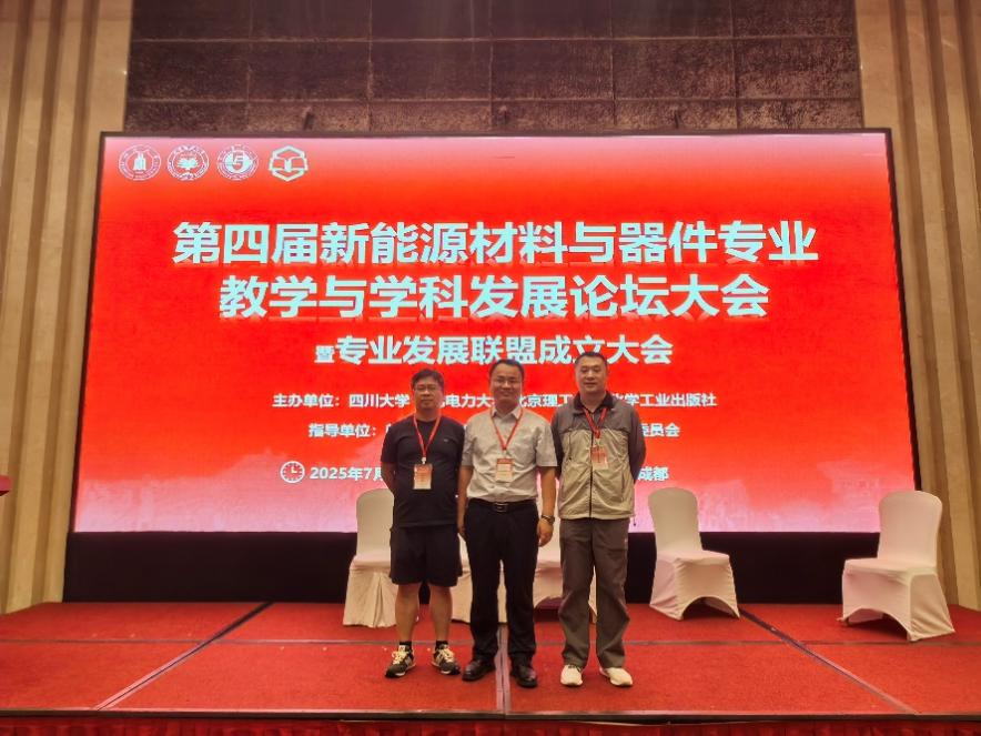 2025年7月18日至20日,由教育部高等学校材料类专业教学指导委员会指导,华北电力大学、北京理工大学、四川大学、化学工业出版社联合主办的“第四届新能源材料与器件教学与学科发展论坛暨专业发展联盟成立大会”在四川成都隆重召开。化学与材料学院副院长李敬发、材料系主任刘斌、新能源系副主任朱国银代表学院出席本次论坛。